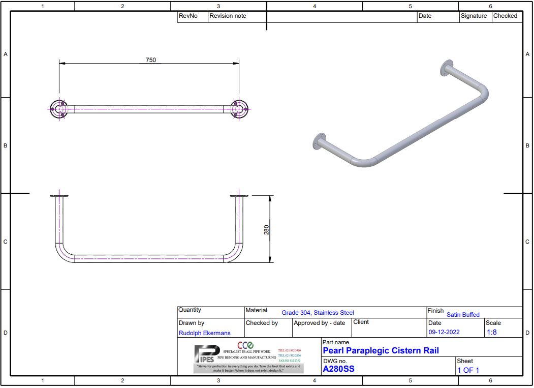 Pearl Paraplegic Stainless Steel Cistern Rail